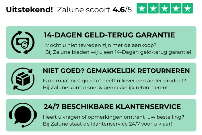 Bij Zalune.nl profiteer je van gratis verzending binnen Nederland en België op alle bestellingen.