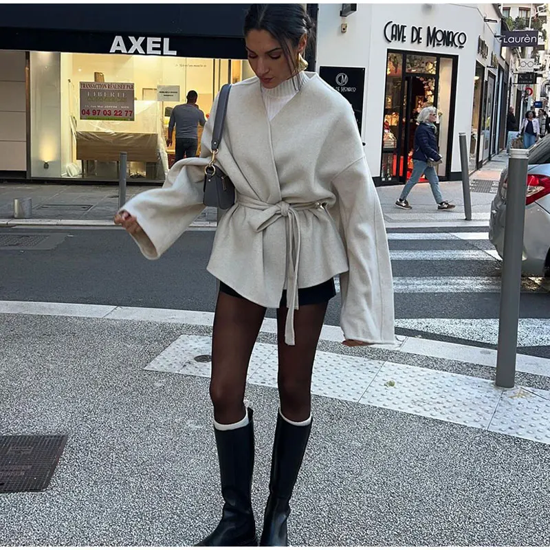 Veelzijdig Te Stijlen: Of je het nu draagt over een casual outfit of een chique look, de V-Hals Lace Up Damesjas voegt altijd een verfijnde touch toe aan je ensemble.