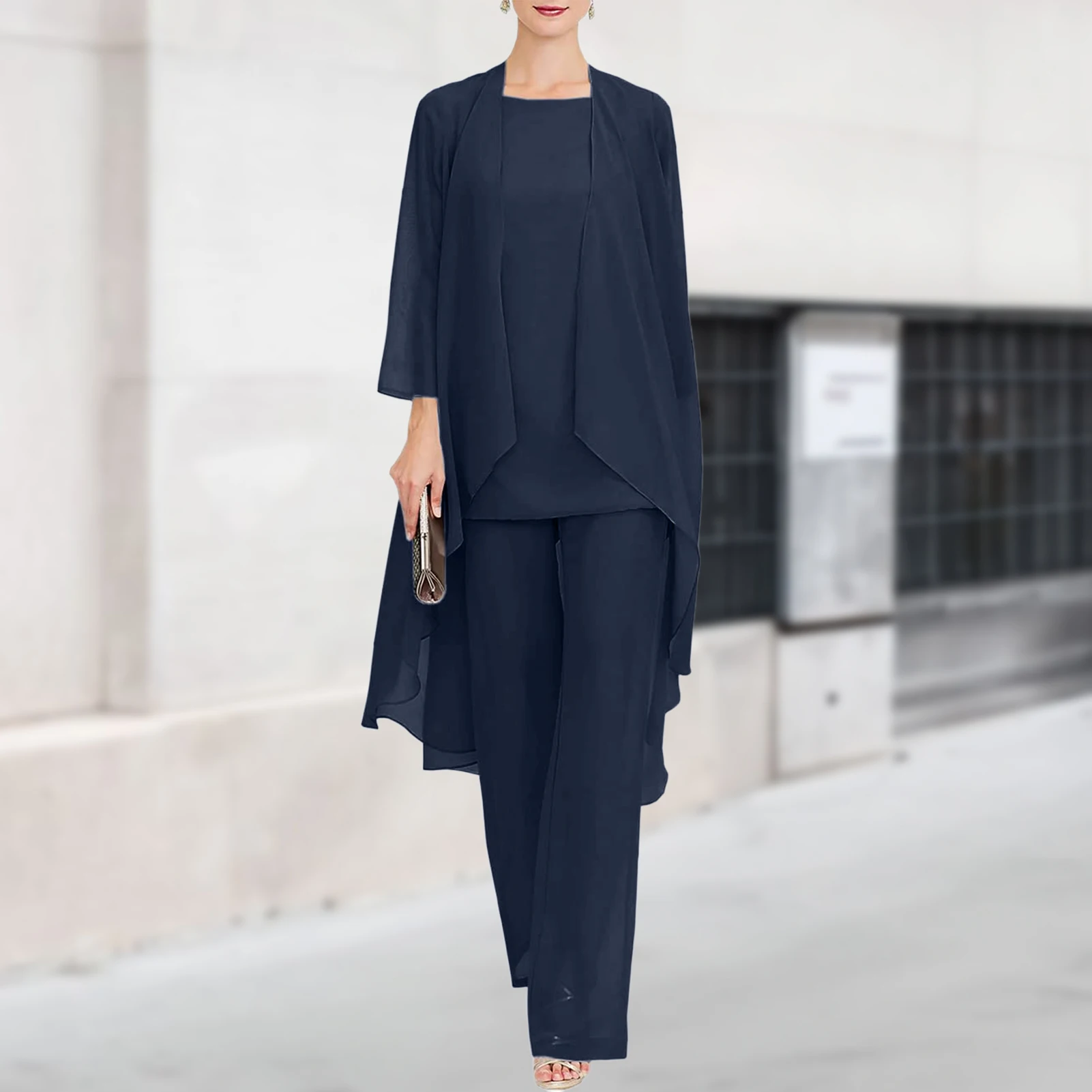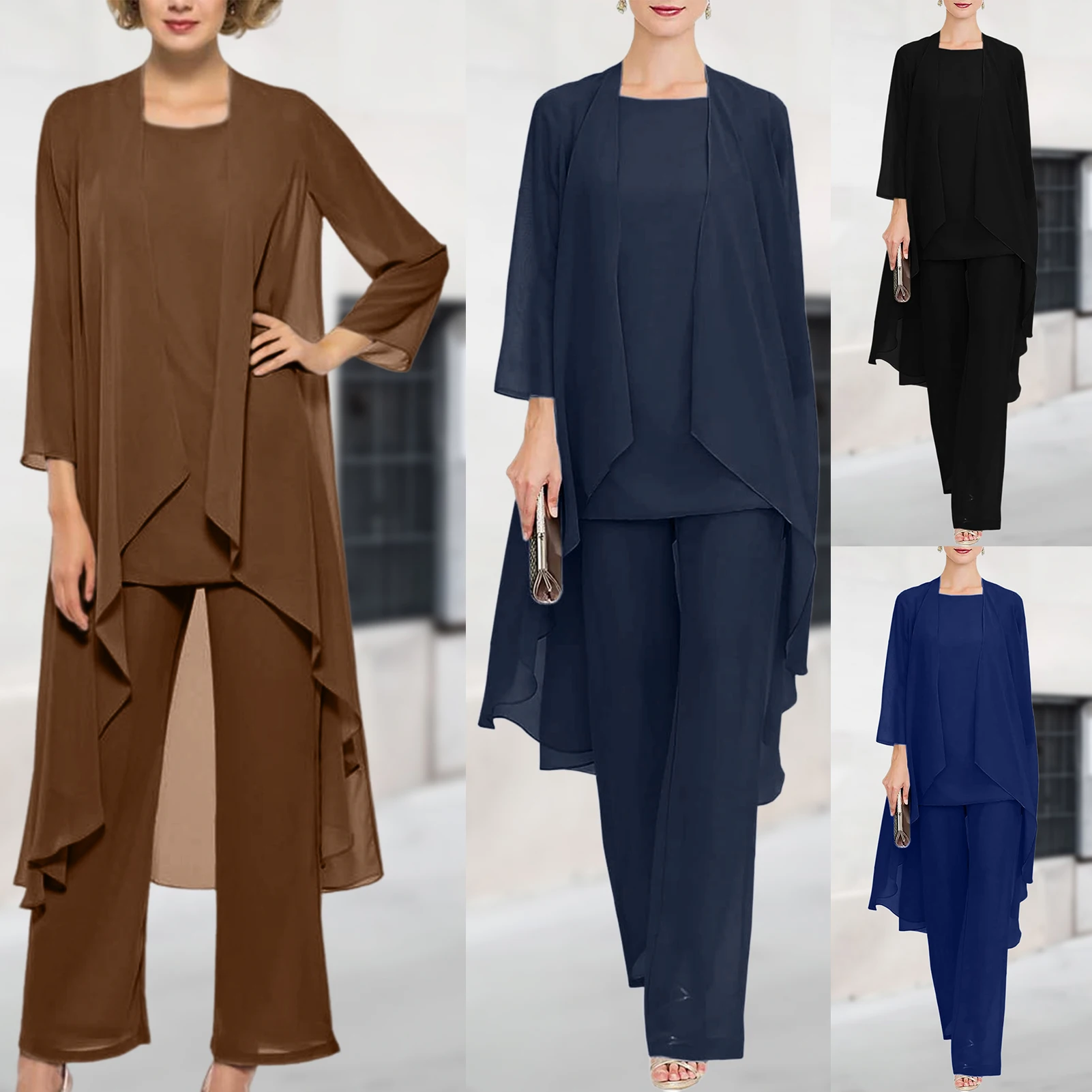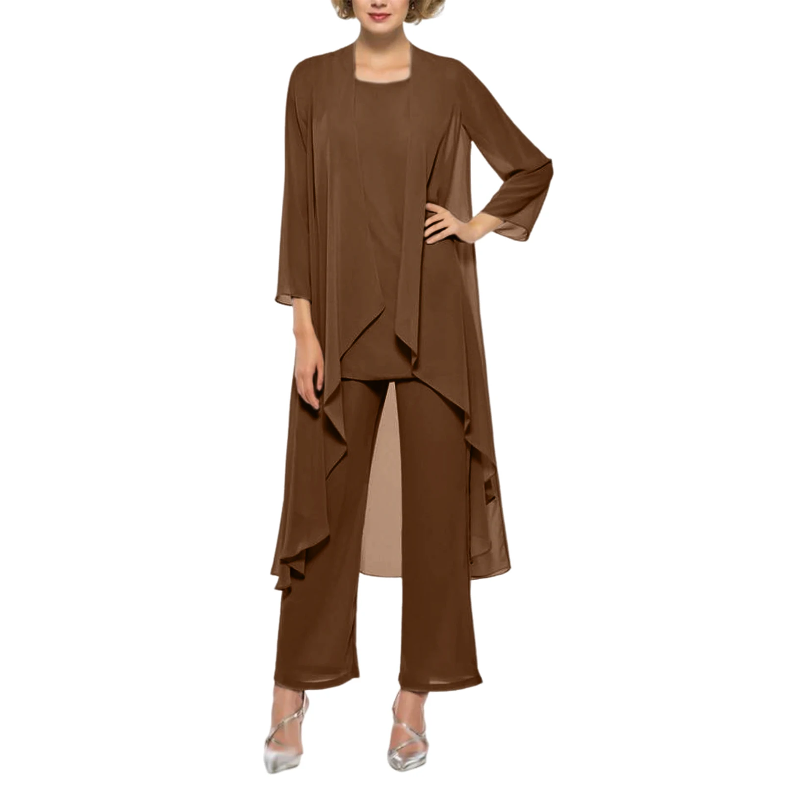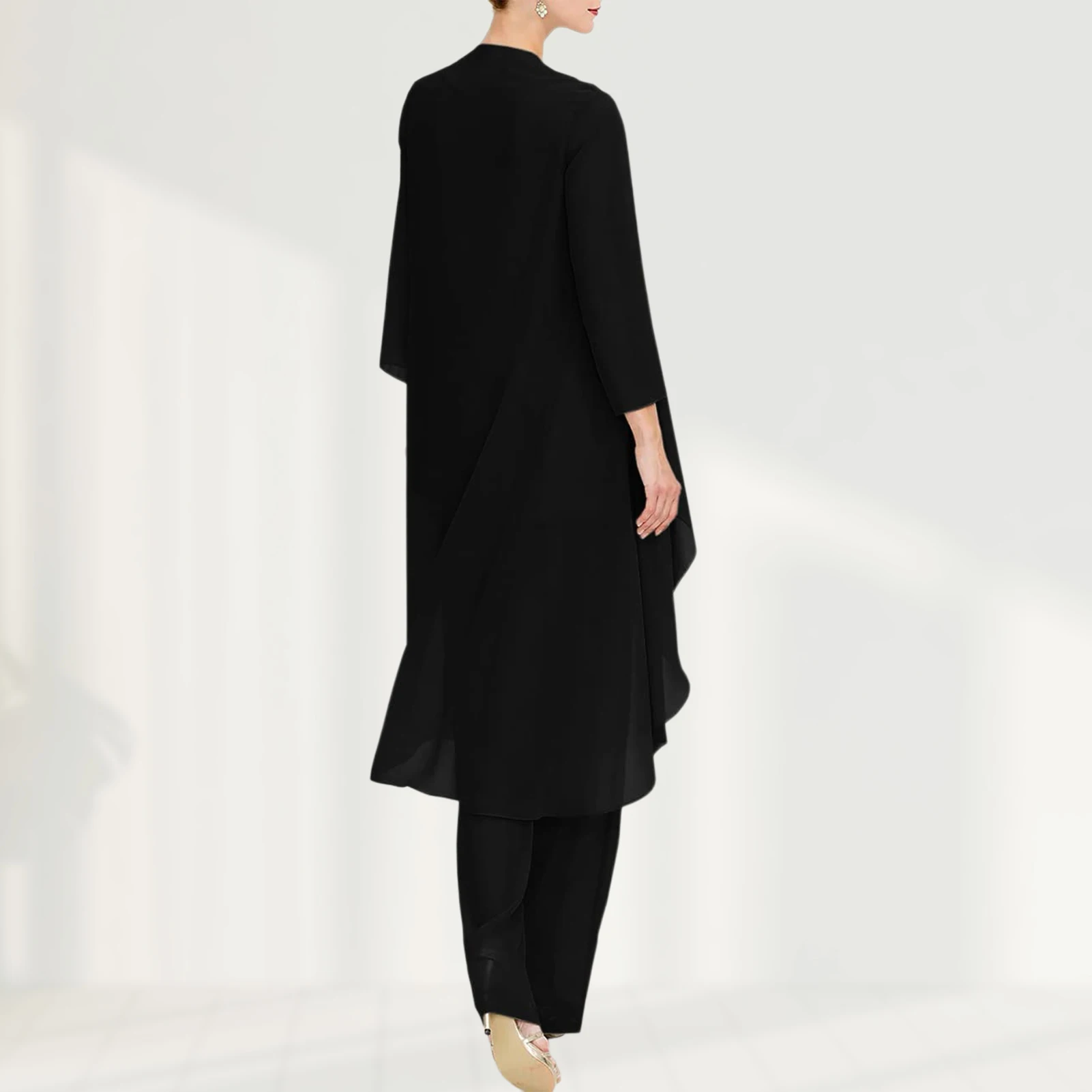 Elegante 3-Delige Set – Chiffon Top, Cardigan & Broek